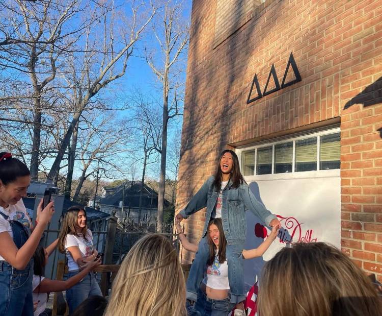 You can find Tri Delta sisters everywhere at Emory. They are active in athletics, academic clubs, community service organizations, and many more, participating in activities that reflect our vibrant and dynamic personalities. They are committed to their philanthropy, St. Jude Children’s Research Hospital, and raised $40,000 through events and fundraisers. When they’re not bonding at sisterhood events or fundraisers, you can find sisters being active on campus, exploring Atlanta, or just hanging out on Eagle Row!